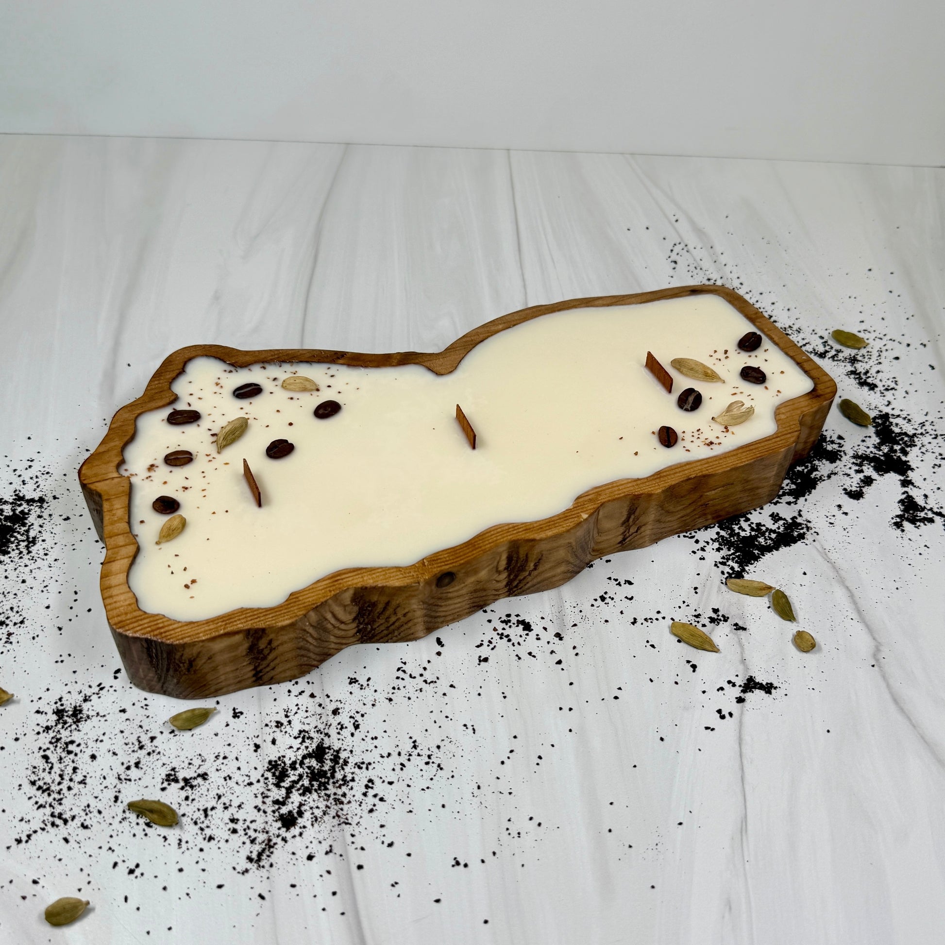 Introducing our exclusive Yemen map shaped Candle, meticulously crafted to evoke a sense of artistry and heritage. Each candle is adorned with a wooden replica of Yemen's map, imported from Ramallah, Palestine, and carefully hand-poured in Florida.